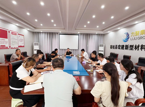 随着夏季高温雨季来临,沥青路面施工进入关键期。宿松宏建新型材料科技有限公司于2025年7月14上午九点半召开了夏季施工安全专题会议。会议由总经理宋陈铭主持,各部门负责人、安全管理人员以及创银机械负责人、民工队现场负责人参加此次会议。