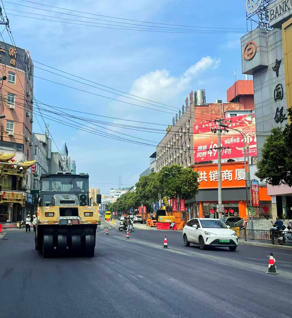 此次施工位于明光市核心区域,周边分布多个居民区及商业综合体,此次沥青路面维修工程明显改善了道路平整度与耐久性,大大提高了市区内部的交通荷载能力,对于连接高铁站和火车站,双站互通的重要枢纽,有着重要意义。