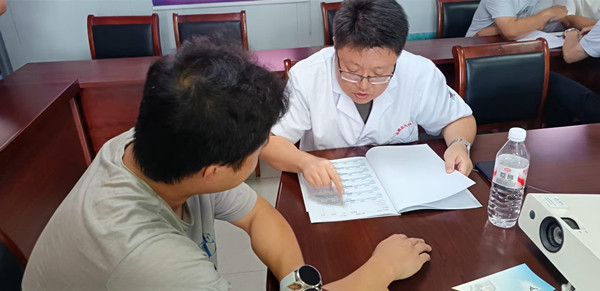 活动现场分为两大核心环节:一是体检报告“一对一”解读,专家针对员工报告中异常指标、潜在健康风险逐一分析,用通俗语言讲解医学知识;二是现场义诊,涵盖呼吸、普外科常见疾病咨询,专家细致问诊并给出个性化诊疗建议。
